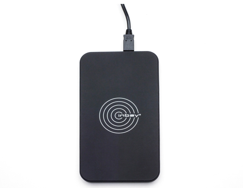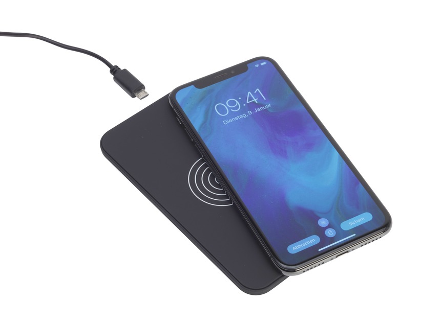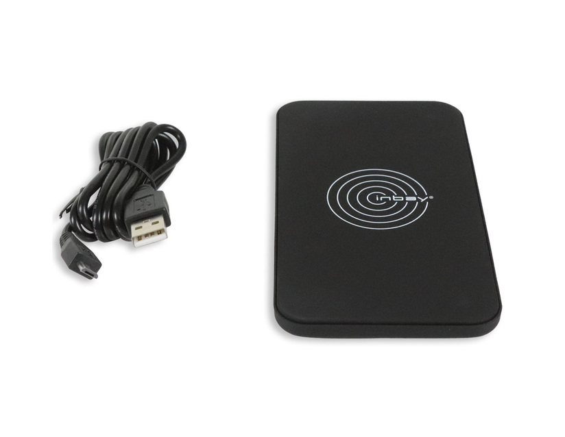 induktivna namizna polnilna postaja Qi z napajanjem USB v črni ali beli barvi za uporabo doma ali v pisarni.