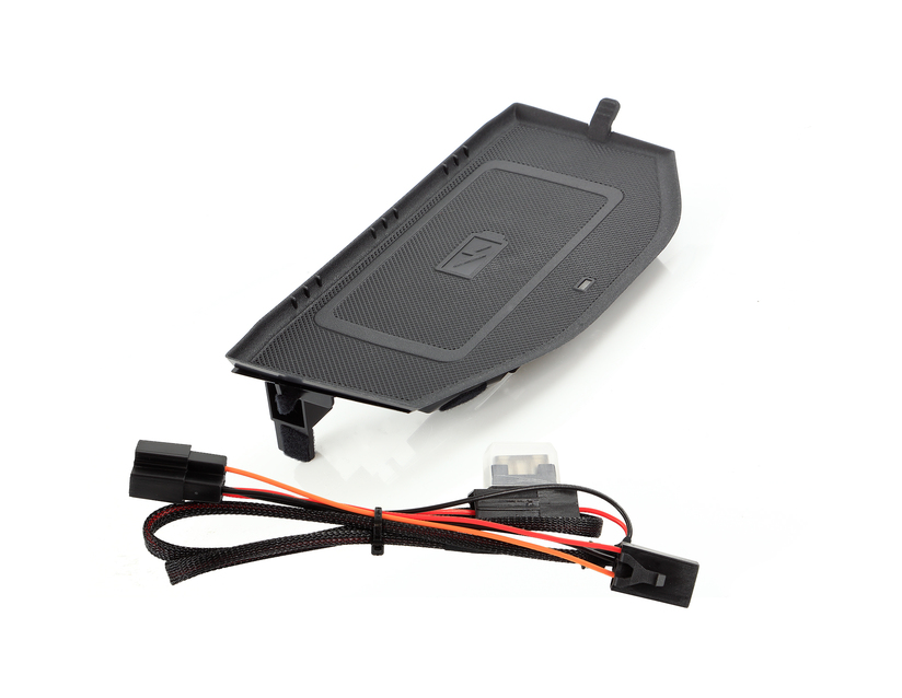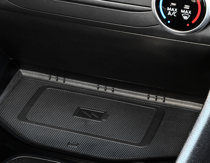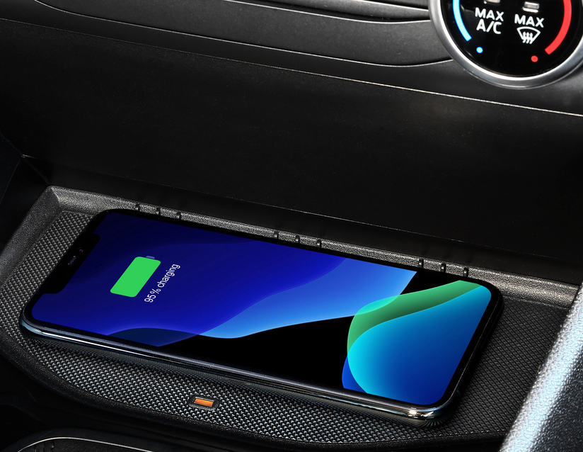 Prilagojen sistem plug-and-play, ki omogoča hitro in enostavno brezžično polnjenje pametnih telefonov, združljivih s Qi (tehnologija induktivnega polnjenja). Polnjenje se začne takoj, ko pametni telefon položite na polnilno blazinico v namenskem pomnilniku, in se samodejno preklopi v stanje pripravljenosti, ko je baterija polna. Zaradi dodatne varnosti se polnilnik izklopi, če kovanci ali druge kovine pridejo v stik s polnilno blazinico