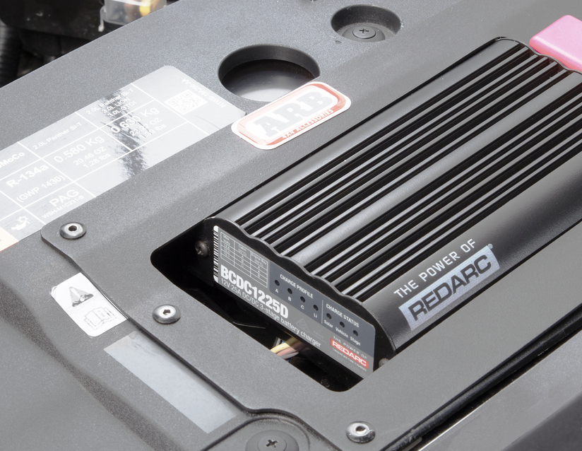 Pomožni baterijski sistem ponuja neodvisen vir napajanja za dodatke, kot so hladilniki in luči za kampiranje, in služi tudi kot rezerva, če glavna baterija odpove. Komplet pomožne baterije vključuje 12-palčni nosilec za baterije, komplet za pritrditev, polnilec in napeljavo. Prosimo, upoštevajte: baterija ni priložena.
