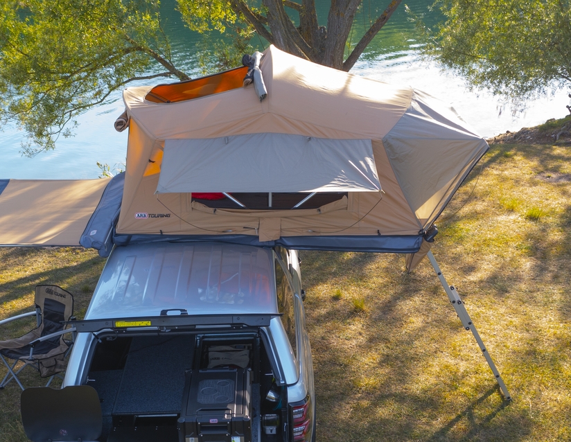 Strešni prtljažnik, zasnovan za montažo na dno strešnega prtljažnika ali prečne nosilce vašega vozila. Trden in vodotesen je popoln spremljevalec za vsa vaša kampiranja. Primeren je za dve odrasli osebi in je primeren za vse vremenske razmere. Šotor lahko postavite kjerkoli. Namestitev je hitra in enostavna, saj sta posteljnina in okvir popolnoma integrirana. Preprosto odprite prevleko, ki je ni treba odstraniti, odprite šotor z lestvijo in potisnite podaljške na svoje mesto, vse notranje palice bodo zdrsnile na svoje mesto. Vstopanje in vstajanje iz postelje je preprosto z zložljivo aluminijasto lestvijo. Pakiranje je enostavno z 2 notranjima vrvicama za pomoč pri vlečenju stranic šotora, ko je zložen. Za uporabo v kombinaciji s kompletom montažne plošče za ozek most ARB za osnovo strešnega nosilca ARB ali kompletom nosilca za montažo strešnega nosilca ARB.
