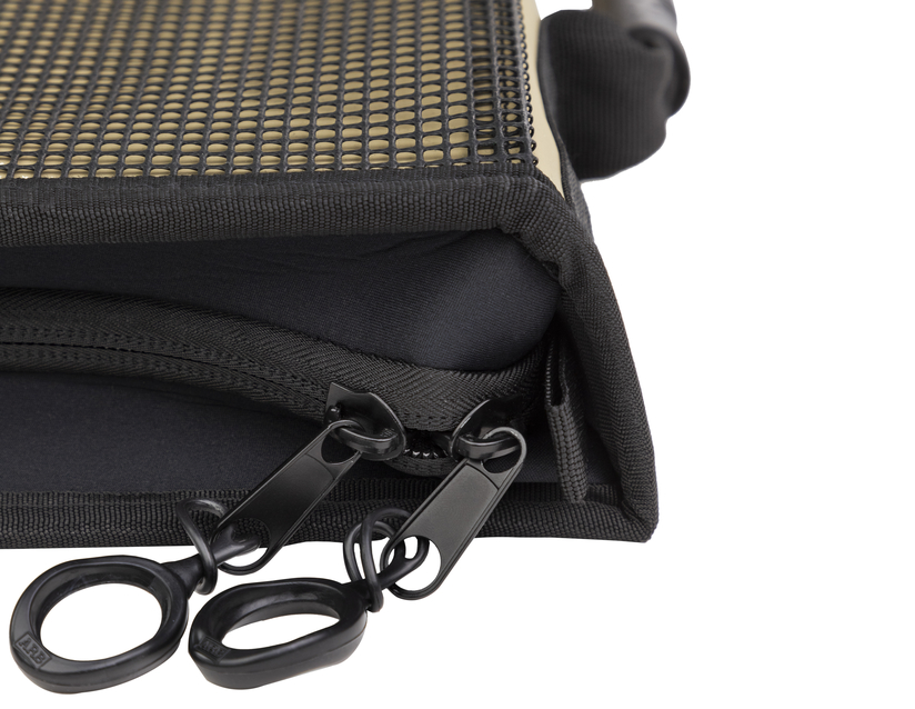 Prtljažnik je kot nalašč za shranjevanje kuhinjskega orodja ali celo vaše osnovne terenske opreme. Sestavljen je iz žepov različnih velikosti, ki ustrezajo vsem vašim potrebam po shranjevanju, od velikega notranjega žepa, odličnega za shranjevanje krožnikov, do manjših žepov z zankami, odličnih za shranjevanje jedilnega pribora. Žepi imajo tudi trpežno mrežico, ki je odlična za hitro prepoznavanje predmetov. Kovček ima gumijast ročaj za prenašanje in močno zadrgo z gumijastim obročkom.