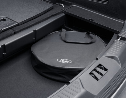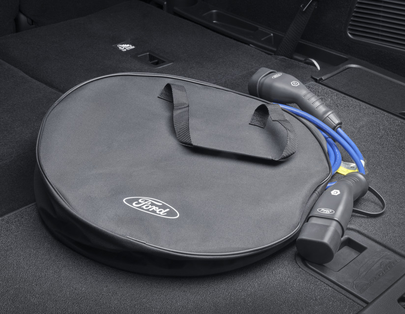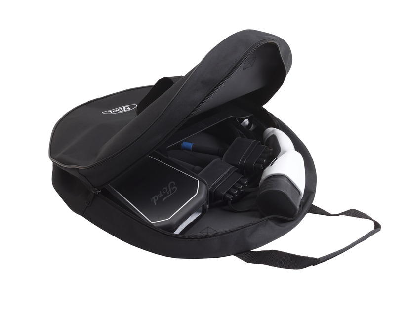 Trpežna torba za shranjevanje vašega vgrajenega polnilnika. Opremljen z logotipom Ford in trakovi za nošenje.
