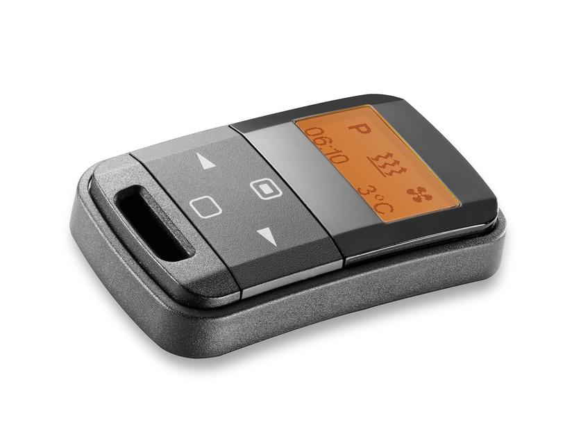 Daljinski upravljalnik za naknadno vgradnjo s funkcijo povratnih informacij in programabilnim časovnikom za do tri vnaprej izbirne čase zagona grelnika, samodejni izračun potrebnega časa ogrevanja v načinu časovnika, delovna razdalja do 1.000 m, enostavno in intuitivno vodenje uporabnika