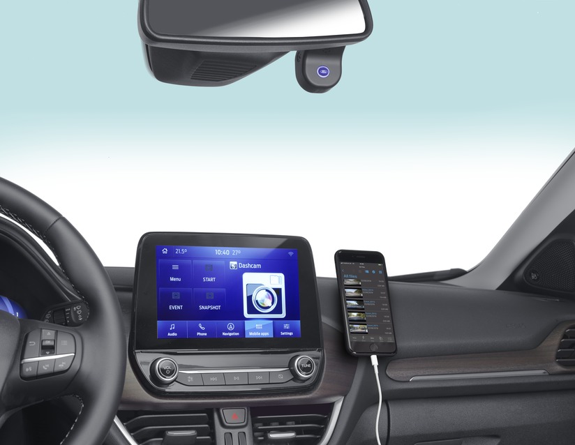 elegantna integracija v vaše vozilo. Popolnoma se prilega območju vzvratnega ogledala, ne da bi omejeval voznikov pogled naprej in nazaj. Posneti podatki se v primeru nesreče samodejno shranijo na kartico SD, vključno z zaščito pred trkom pri parkiranju. Širokokotna kamera posname skoraj vse dogodke okoli vozila. Zagotavlja tudi geografske podatke, npr. koordinate in hitrost. Funkcije kamere in posnete podatke je mogoče priročno upravljati prek mobilne naprave zahvaljujoč združljivosti Wi-Fi in namenski aplikaciji za pametni telefon. Preprosto in funkcionalno upravljanje je zagotovljeno prek zaslona Applink by SYNC 3 in/ali glasovnega upravljanja. Glavne značilnosti: 139 ° širokokotna kamera s polno HD ločljivostjo v vseh svetlobnih pogojih, GPS sprejemnik in senzor G-Force. Vključuje 16 GB SD kartico in montažni material