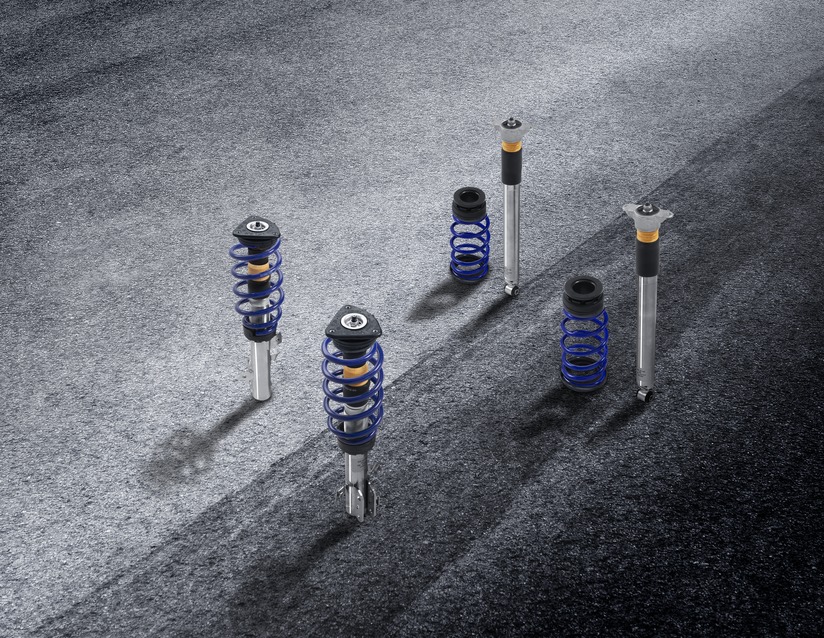 Komplet po višini nastavljive šasije iz nerjavečega jekla, vzmeti v modri barvi Ford Performance