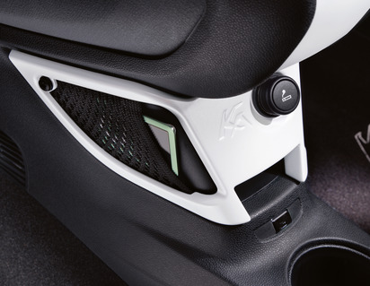 S črno mrežico na vsaki strani, eleganten in praktičen prostor za shranjevanje mobilnih telefonov, z logotipom Ka