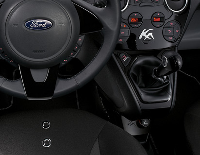 S črno mrežico na vsaki strani, eleganten in praktičen prostor za shranjevanje mobilnih telefonov, z logotipom Ka
