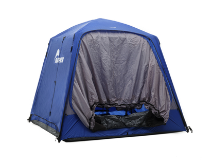 Šotor na prtljažnih vratih je zasnovan tako, da ga postavite na tla in povežete prek odprtih prtljažnih vrat vašega vozila z univerzalnim ohišjem, ki se zavije. Ta vseletni šotor za 4 osebe, izdelan tako, da prenese vremenske razmere, je kot nalašč za vaše kampirne avanture skozi vse leto.