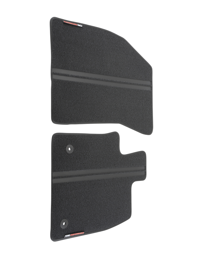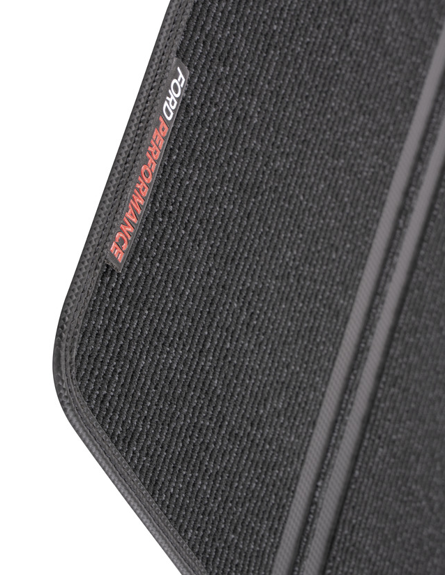 Oblikovan, komplet 2, s pritrdilnimi elementi na voznikovi strani. Vinilni logotip Ford Performance, karbonski videz oblikovalskih črt in dvojno zašiti robovi v kovinsko sivi barvi