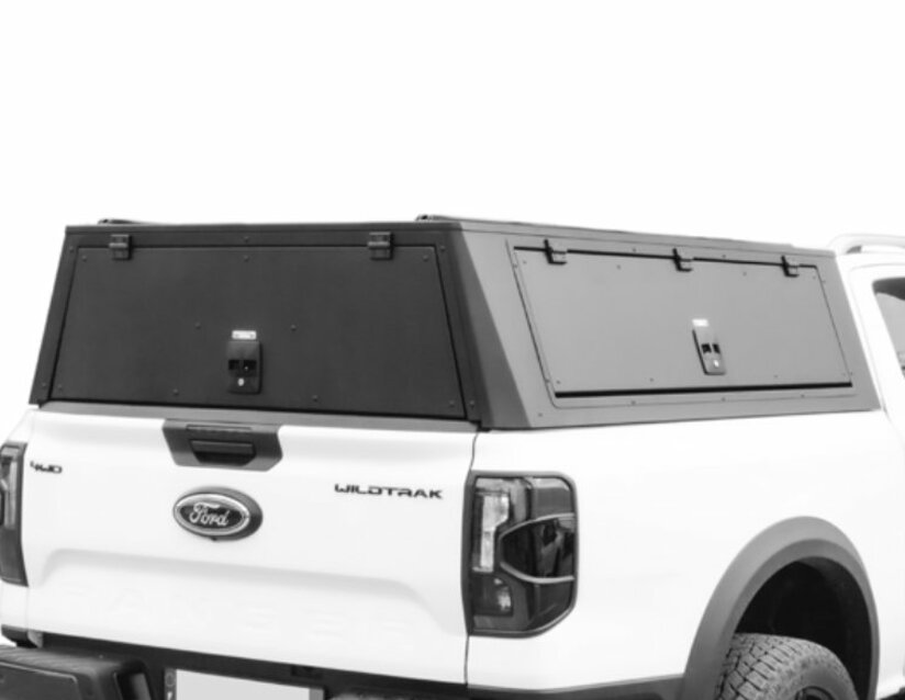 Robustna aluminijasta trda streha z 2 aluminijastimi stranskimi vrati in aluminijastimi zadnjimi vrati. Vsa vrata so v odprtem položaju s plinskimi oporniki, kar vam omogoča enostaven vsestranski dostop do tovorne postelje.