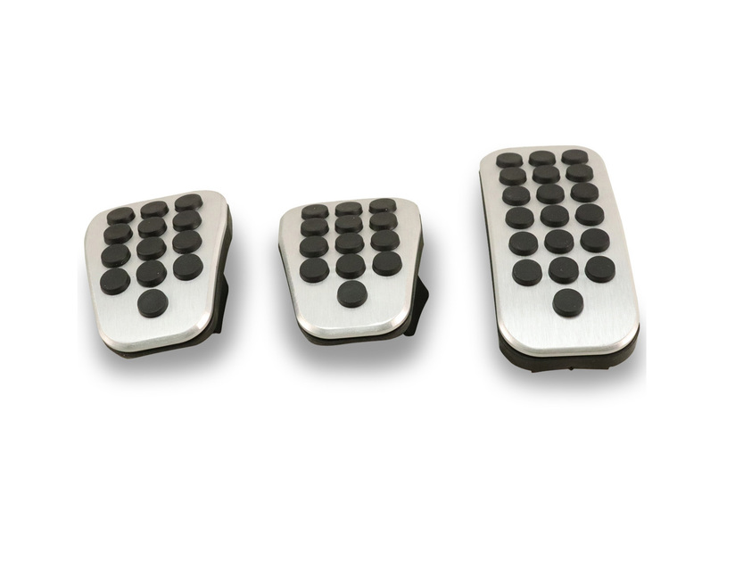 Očarljivi dodatki za večjo zmogljivost športnega voznika. Izdelano iz nerjaveče originalne aluminijeve zlitine, z gumijastimi vložki proti zdrsu – to je kakovost, dizajn in funkcija, ki dopolnjujejo športni stil vozila.