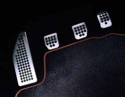 Očarljivi dodatki za večjo zmogljivost športnega voznika. Izdelano iz nerjaveče originalne aluminijeve zlitine, z gumijastimi vložki proti zdrsu – to je kakovost, dizajn in funkcija, ki dopolnjujejo športni stil vozila.