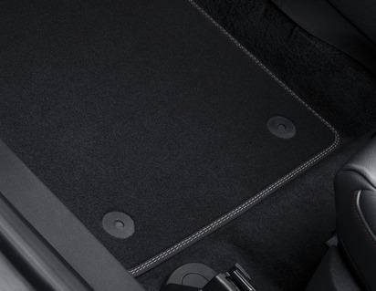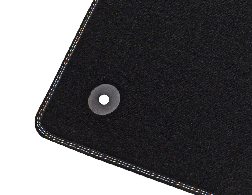 Spredaj talne preproge iz velurja, črne barve s kovinsko sivimi šivi