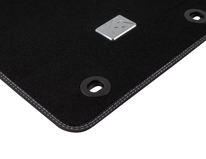 Oblikovana, komplet 2 kosov, s kovinskim logotipom Ka in črnim nubuk okvirjem s srebrnimi dvojnimi šivi