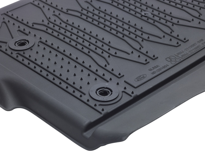 Ford gumijasti tepihi so izdelani po meri, da se natančno prilegajo vašemu vozilu. Voznikova preproga je pritrjena neposredno na tla, da prepreči stik s pedali. Narejeni so za intenzivno uporabo in ohranjajo tla vozila čista in suha. Na voljo sta sprednji in zadnji del.