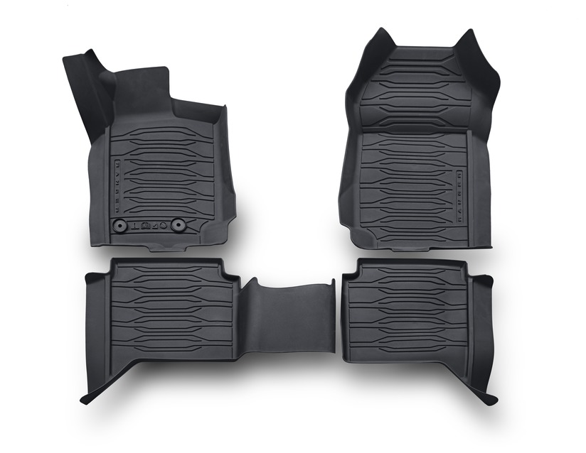 Ford gumijasti tepihi so izdelani po meri, da se natančno prilegajo vašemu vozilu. Voznikova preproga je pritrjena neposredno na tla, da prepreči stik s pedali. Narejeni so za intenzivno uporabo in ohranjajo tla vozila čista in suha. Na voljo sta sprednji in zadnji del.