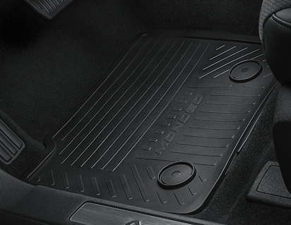 Ford gumijasti tepihi so izdelani po meri, da se natančno prilegajo vašemu vozilu. Voznikova preproga je pritrjena neposredno na tla, da prepreči stik s pedali. Narejeni so za intenzivno uporabo in ohranjajo tla vozila čista in suha. Na voljo sta sprednji in zadnji del.