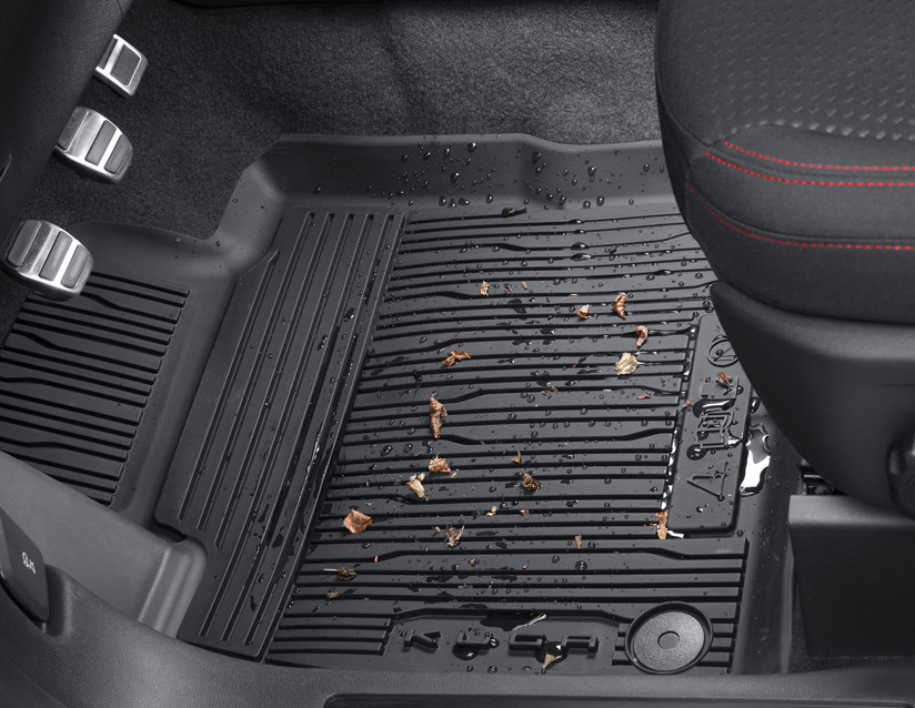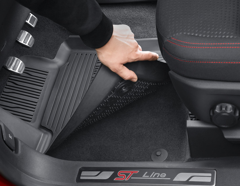 Ford gumijasti tepihi so izdelani po meri, da se natančno prilegajo vašemu vozilu. Voznikova preproga je pritrjena neposredno na tla, da prepreči stik s pedali. Narejeni so za intenzivno uporabo in ohranjajo tla vozila čista in suha. Na voljo sta sprednji in zadnji del.