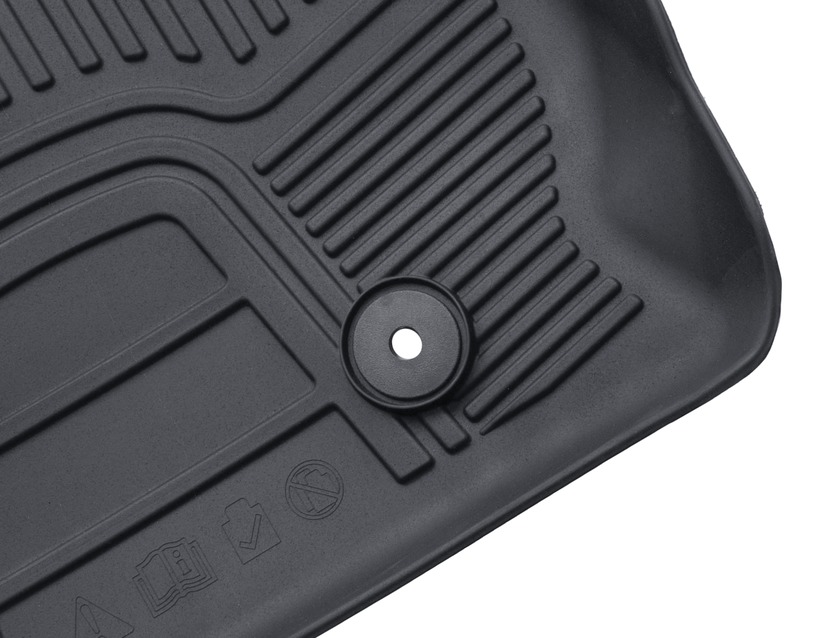 Ford gumijasti tepihi so izdelani po meri, da se natančno prilegajo vašemu vozilu. Voznikova preproga je pritrjena neposredno na tla, da prepreči stik s pedali. Narejeni so za intenzivno uporabo in ohranjajo tla vozila čista in suha. Na voljo sta sprednji in zadnji del.