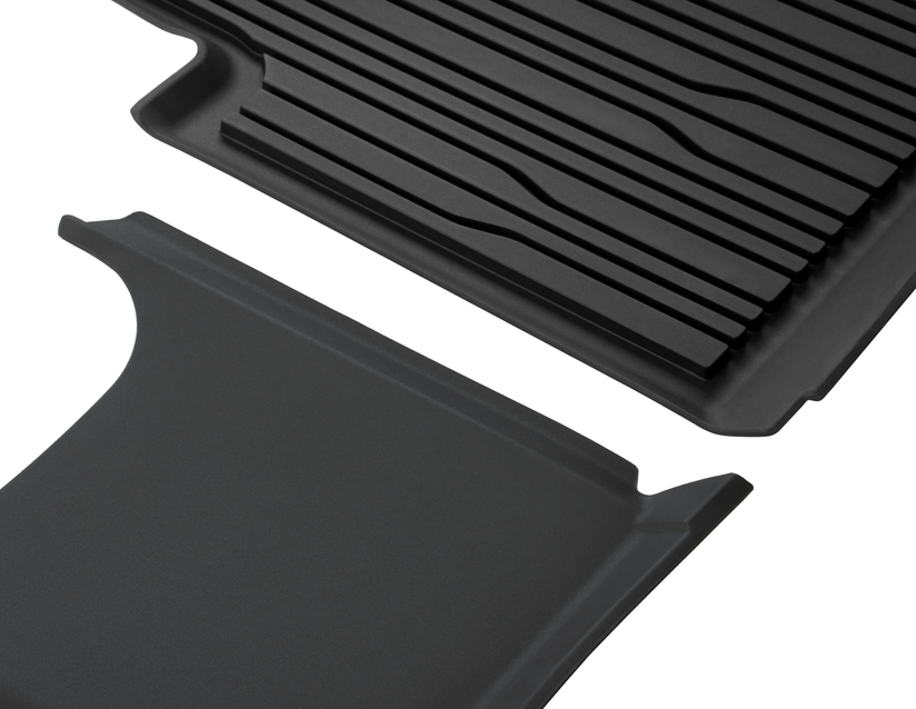 Oblikovan, komplet 2, s pritrdilnimi elementi na voznikovi strani. Dvignjeni robovi zagotavljajo še boljšo zaščito notranje preproge pred umazanijo in vlago.