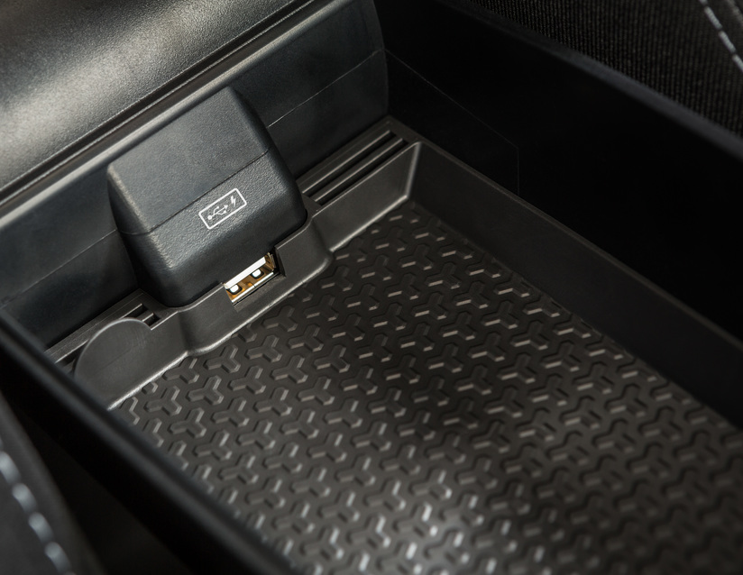 Zložljiv naslon za roke, ki se pritrdi na stran voznikovega sedeža. Ima vgrajen prostoren odlagalni prostor s protizdrsno podlago in oblazinjeno površino iz usnja, nastavljivo višino in kot, funkcijo mehkega odpiranja/zapiranja, drsni vrh in režo USB v naslonjalu za roke za polnjenje (samo oskrba z energijo). Prostornina približno 1 liter, barva karoserije naslona za roke v črni barvi. Dobavljeno s kovinskim adapterjem za vgradnjo